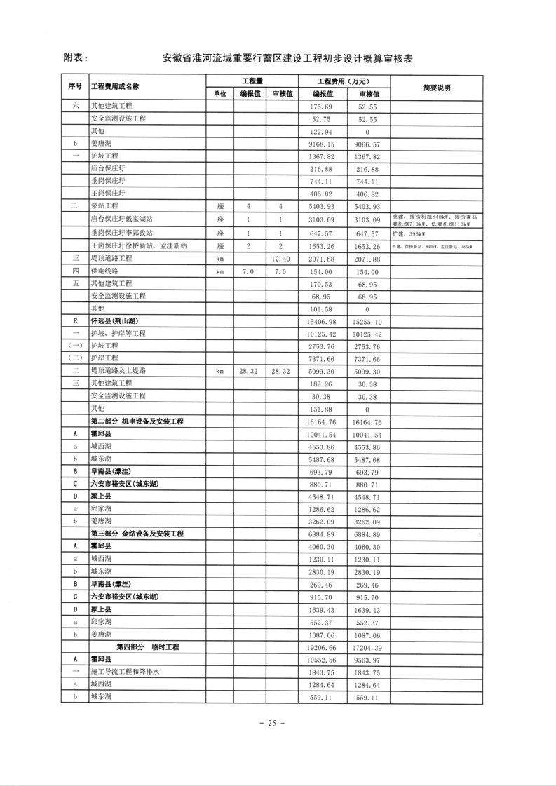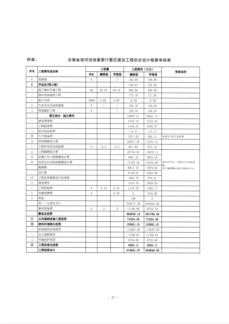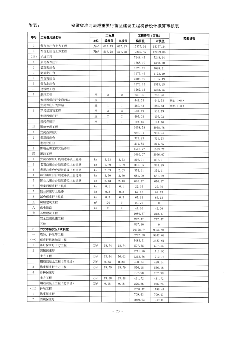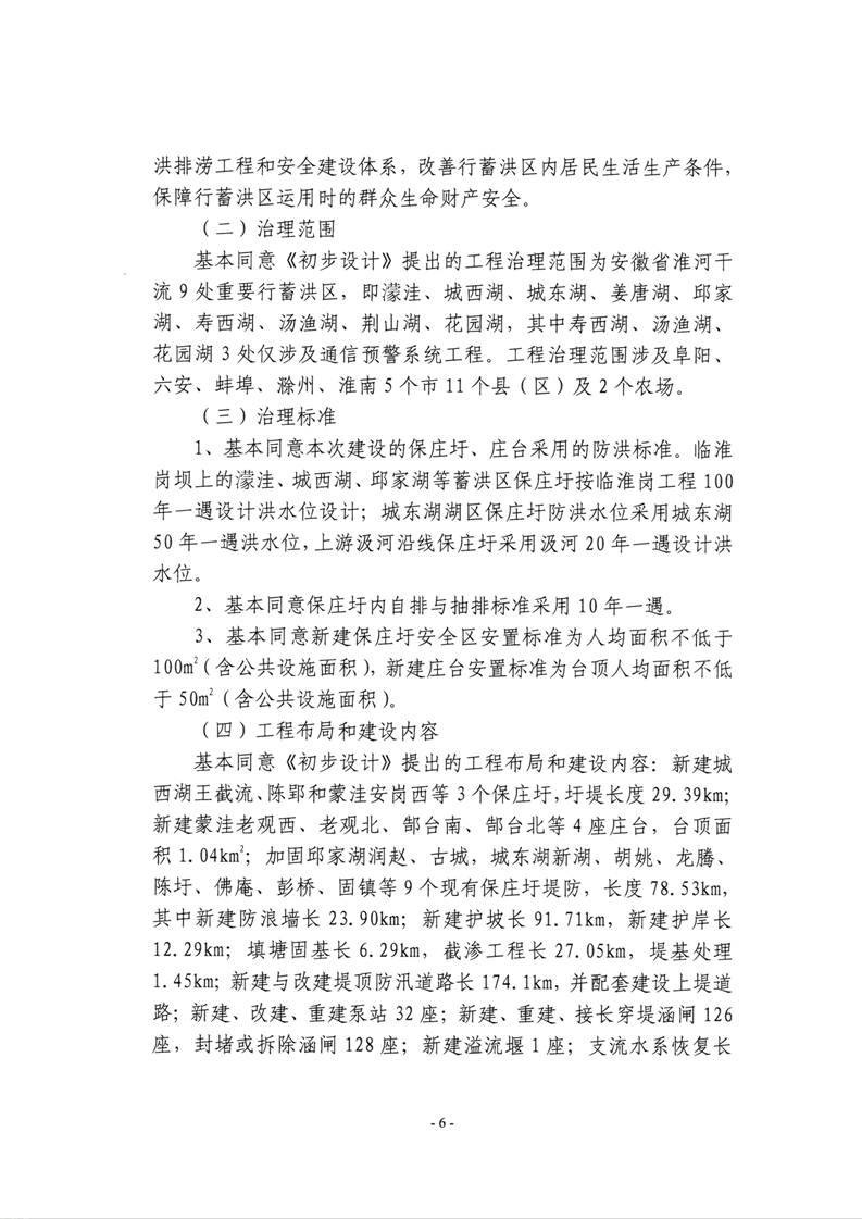 关于安徽省淮河流域重要行蓄洪区建设工程初步设计报告的批复