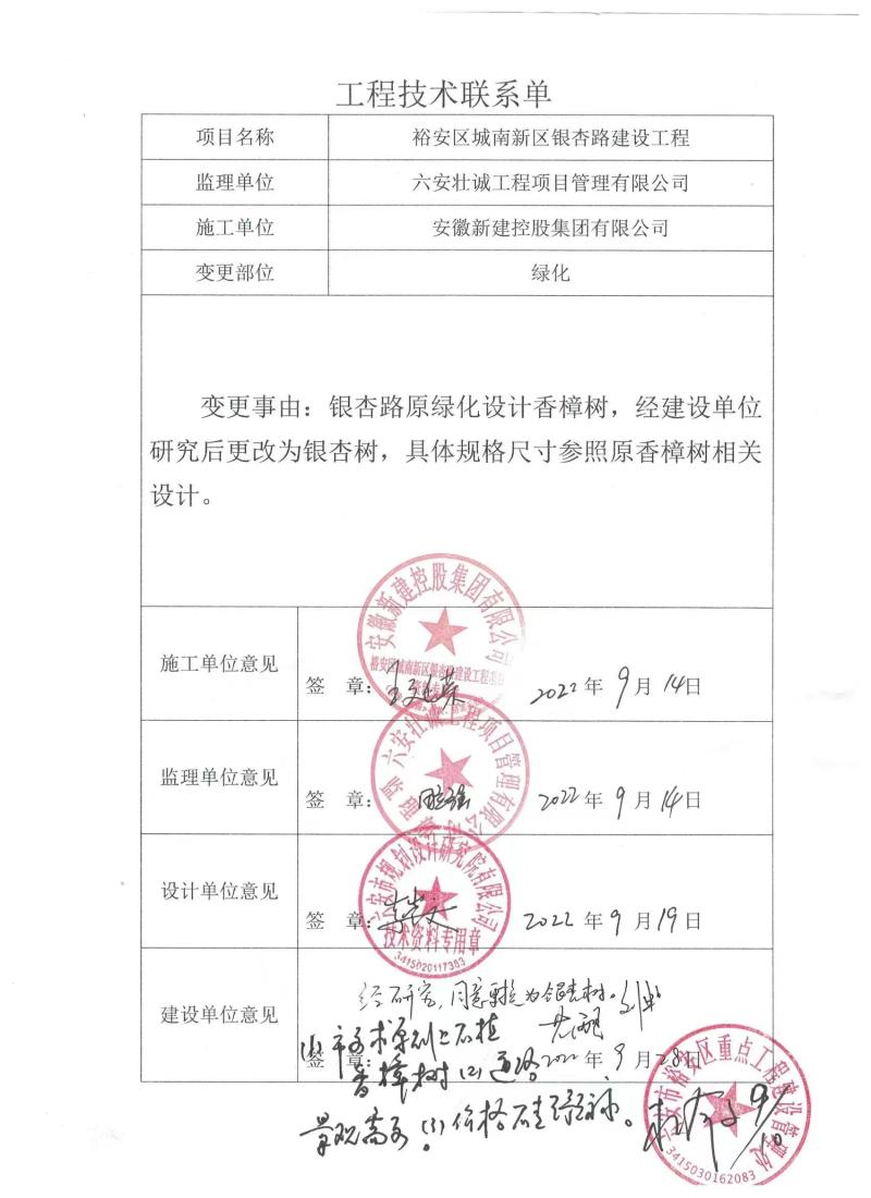 关于城南新区银杏路建设工程重大设计变更的情况说明