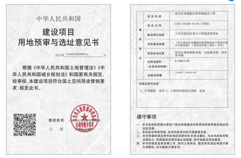 城南新区银杏路建设工程建设项目用地预审与选址意见书