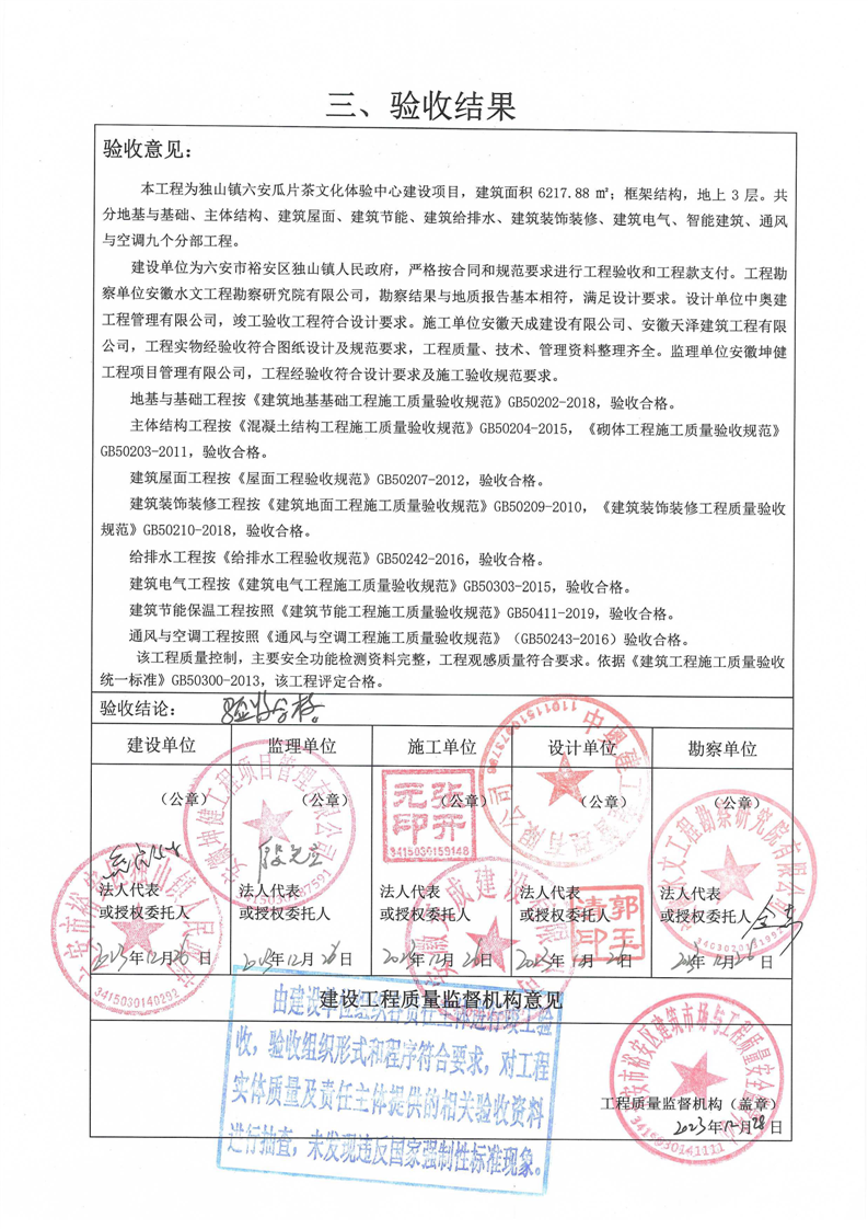 独山镇六安瓜片茶文化体验中心及配套基础设施项目工程竣工验收报告