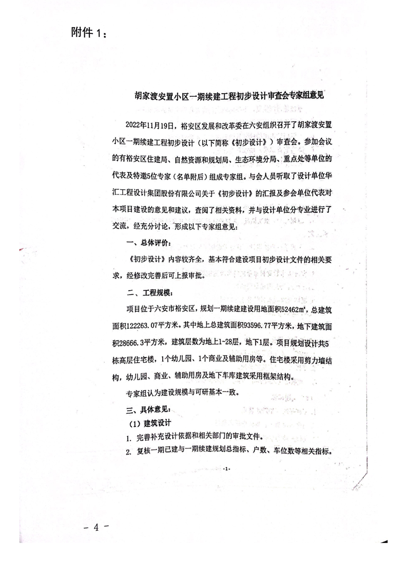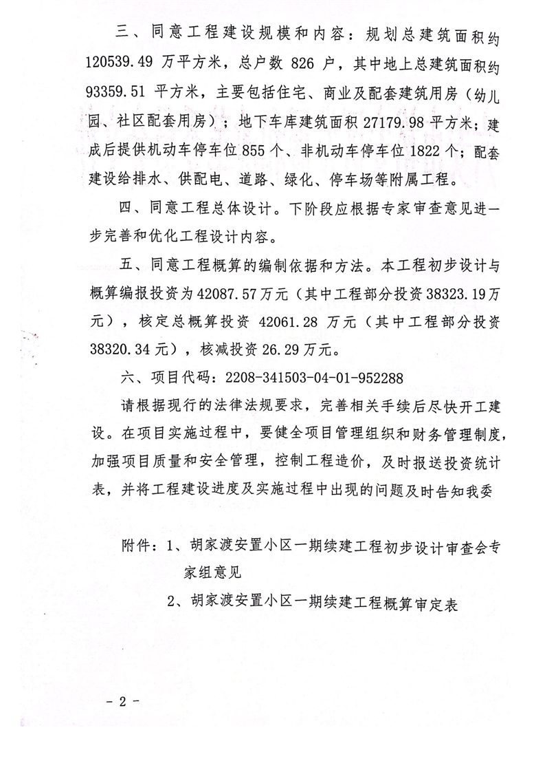 胡家渡安置小区一期续建工程初步设计与概算的批复