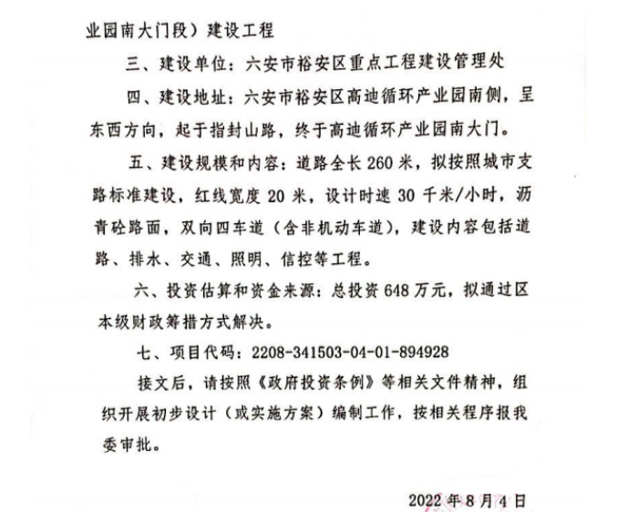 信息来源:裕安区重点工程处