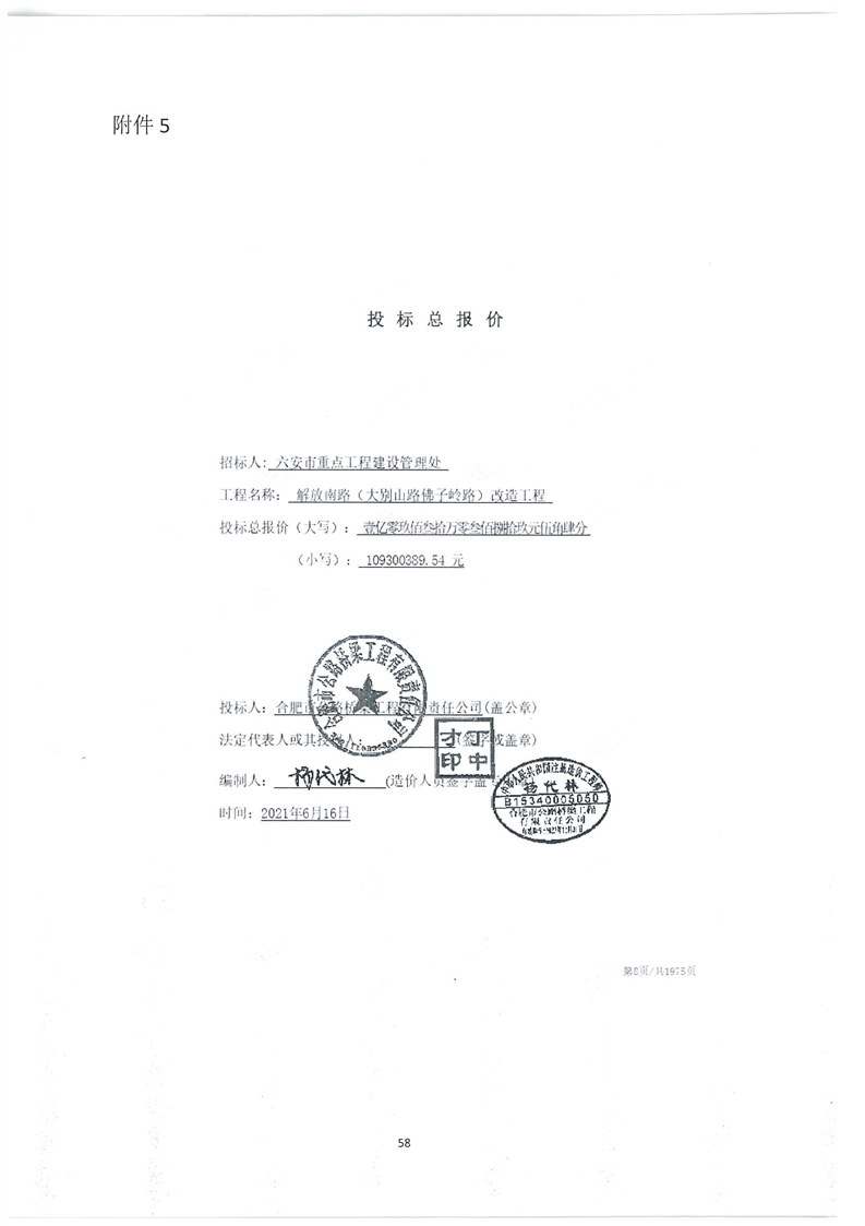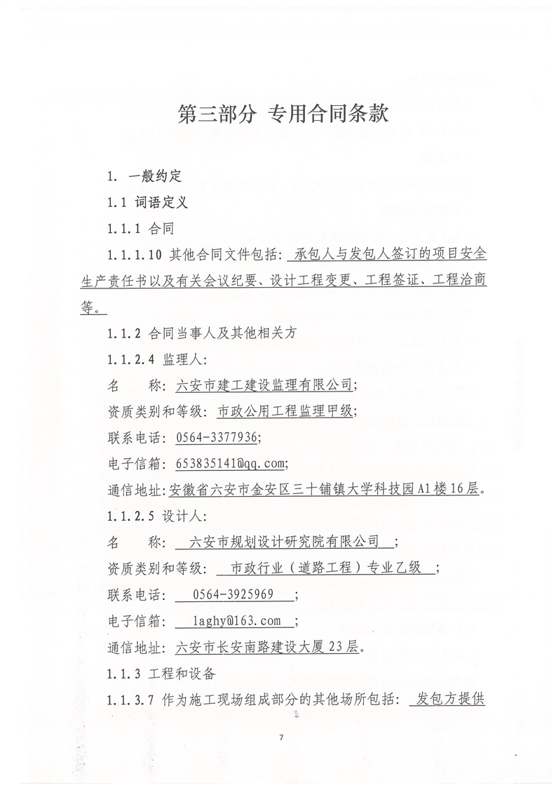 解放南路(大别山路-佛子岭路)改造工程建设工程施工合同