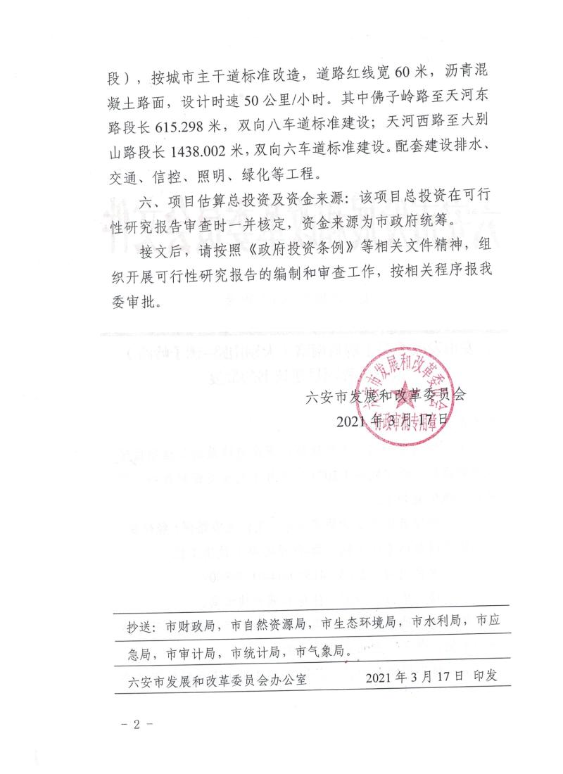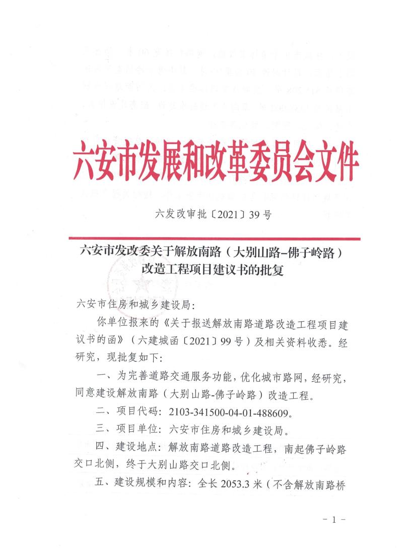 解放南路(大别山路-佛子岭路)改造工程项目建议书批复