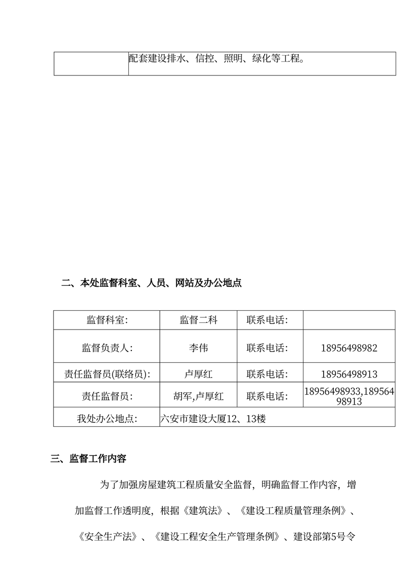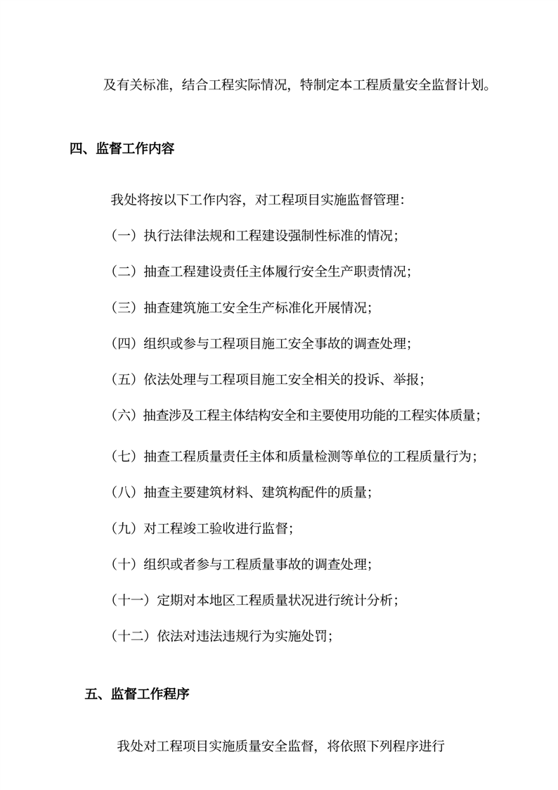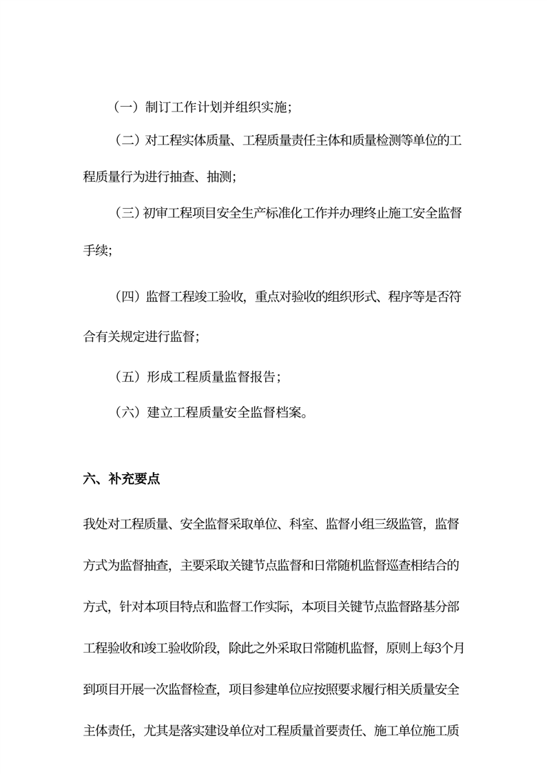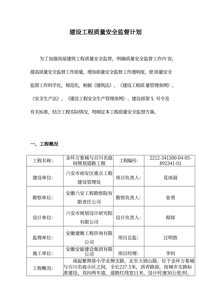 金环万象城与百川名庭间规划道路工程质量安全监督计划