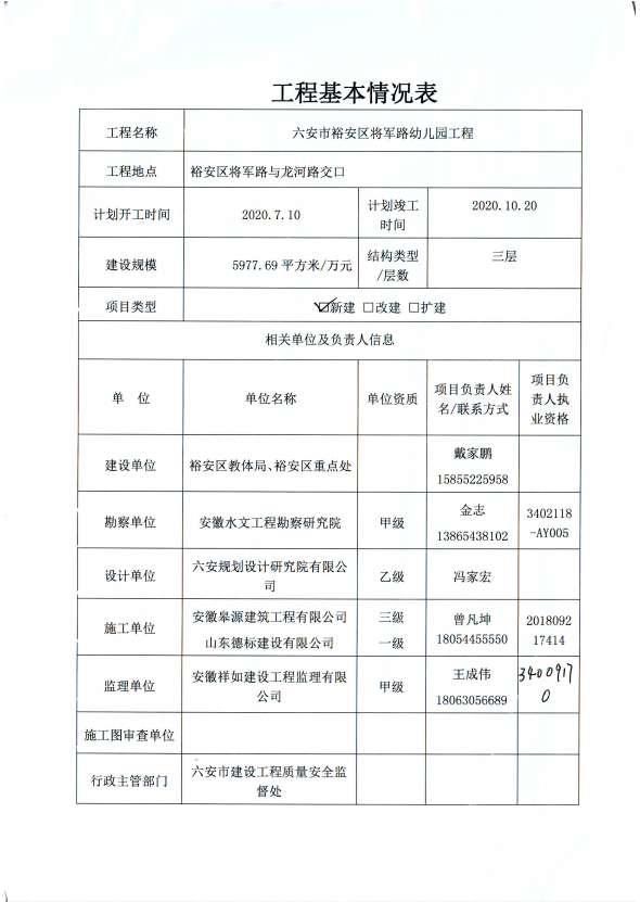 将军路幼儿园建设工程提前介入质量安全监督申请表