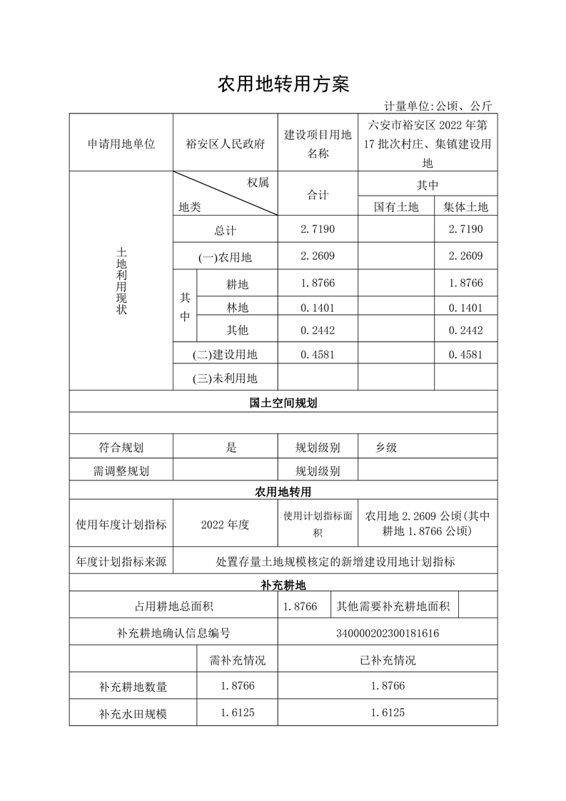 六安市畅通城市环线工程—老淠河过河通道附属莲香西路工程建设用地呈报农用地转用方案