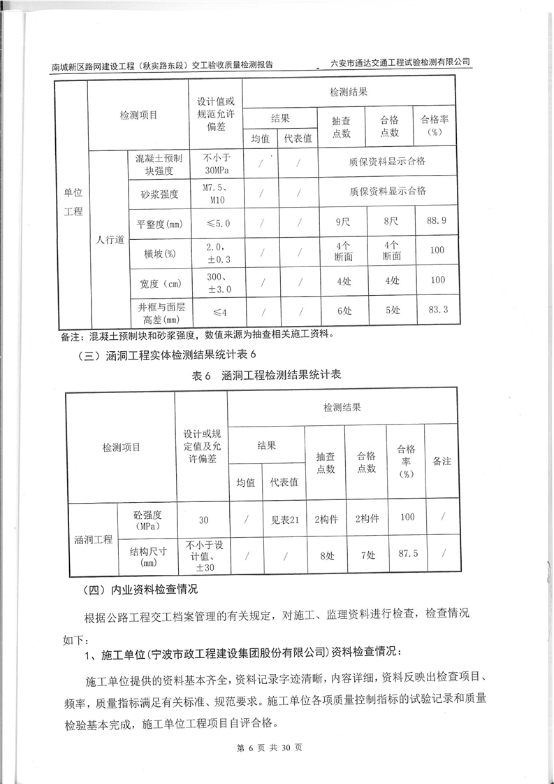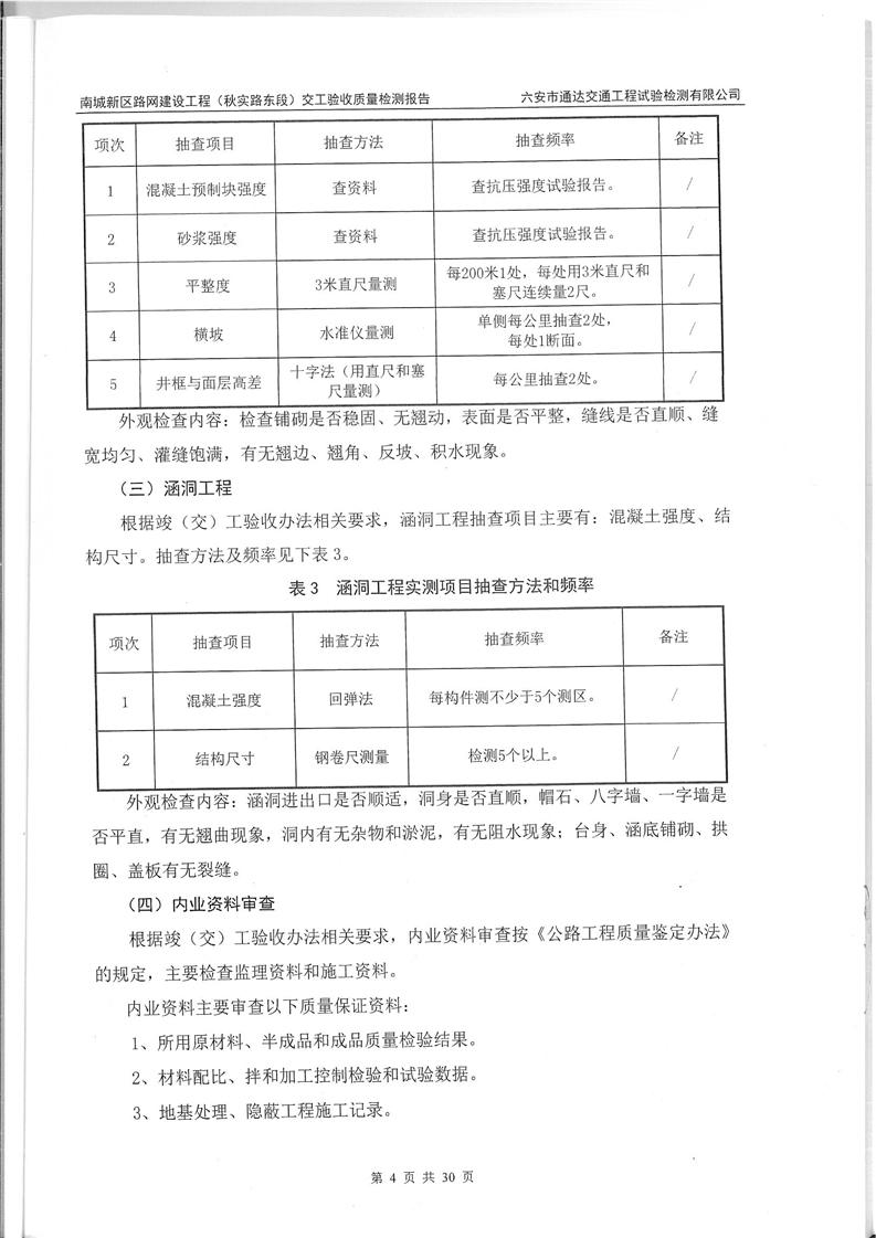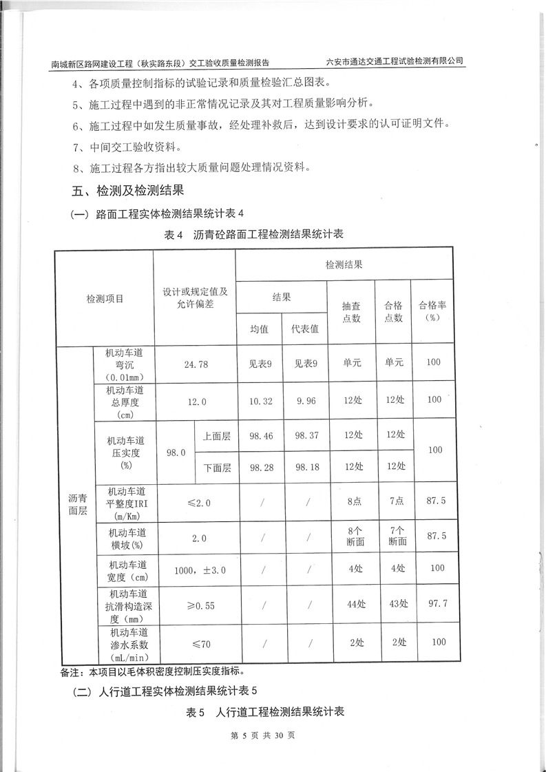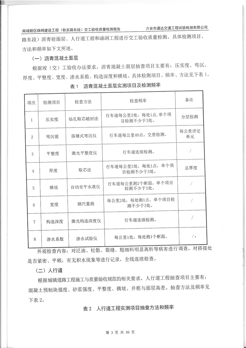 南城新区路网建设工程(秋实路东段)交工验收质量检测报告