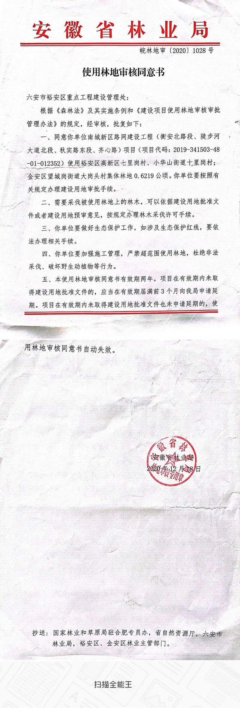 南城新区路网建设(4条路)工程使用林地审核意见书