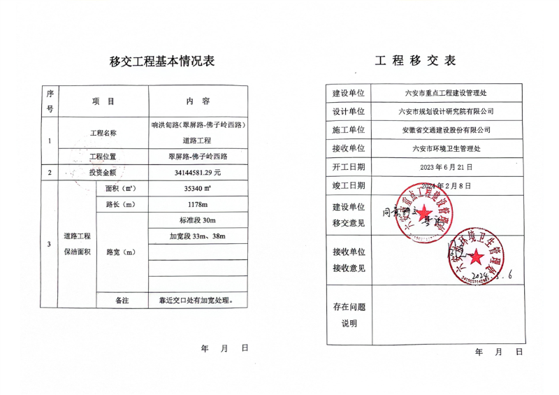 响洪甸路保洁移交表
