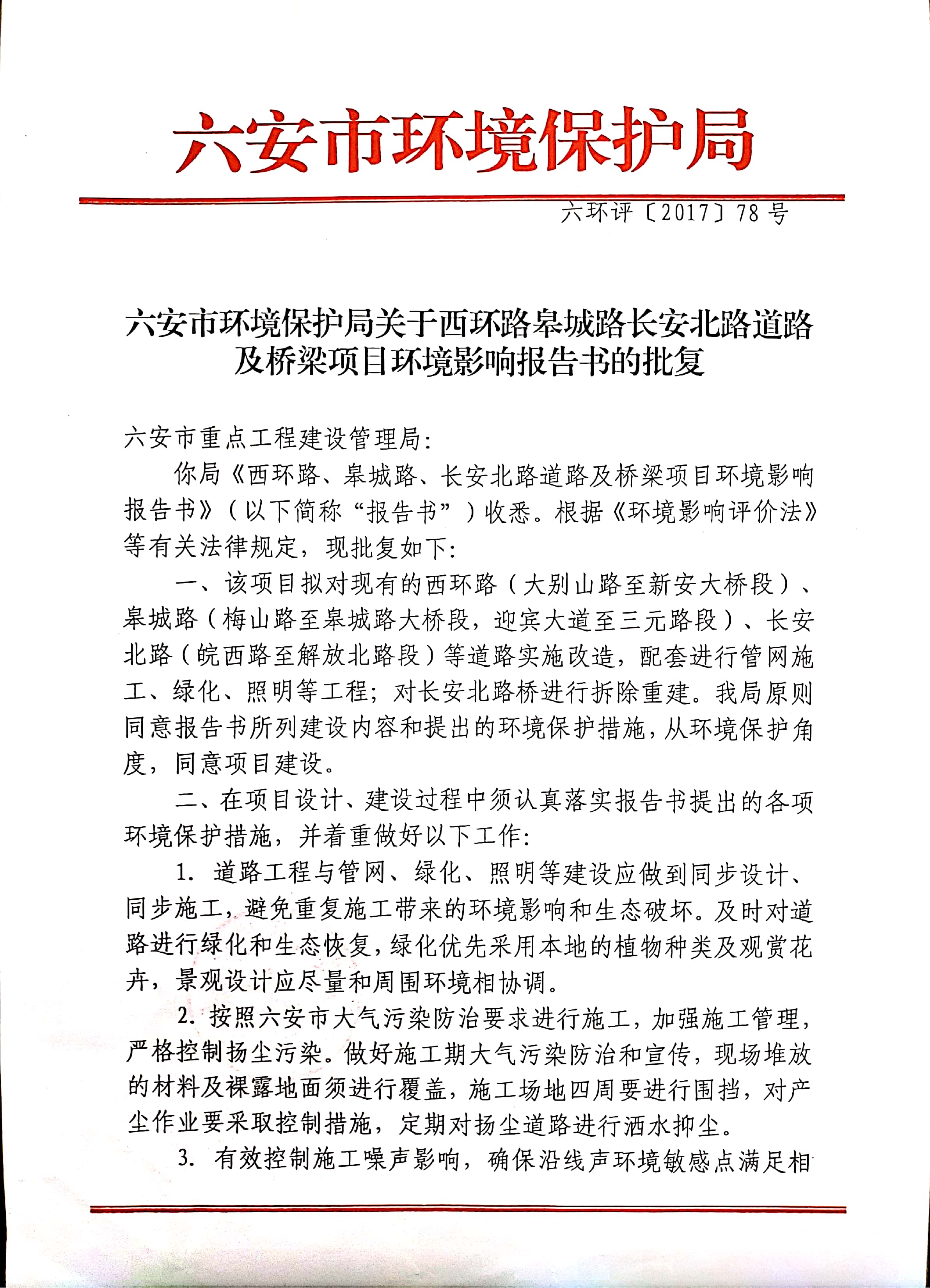 西环路建设项目环境影响报告书的批复
