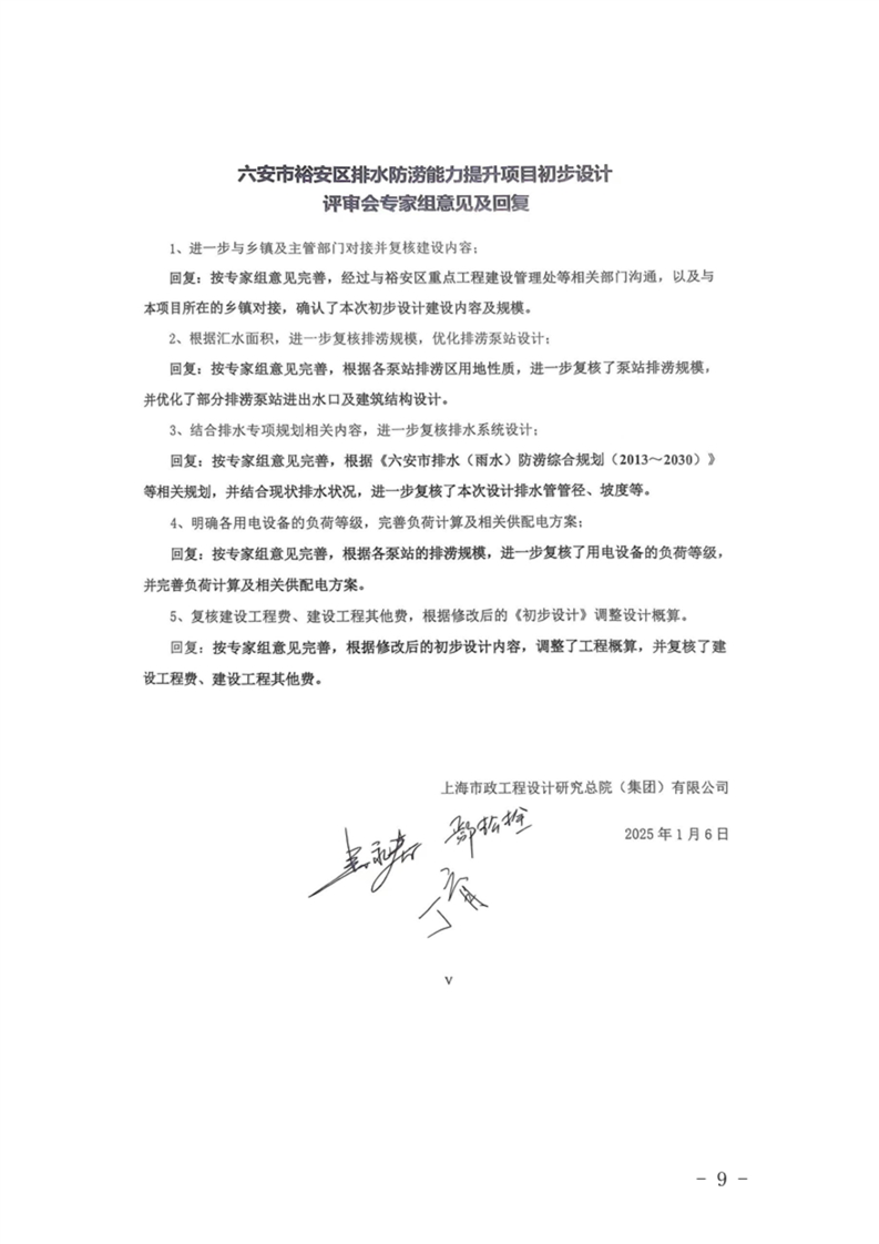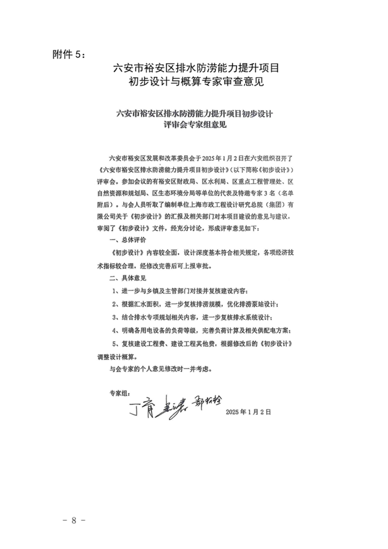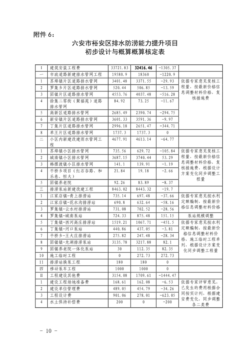 裕安区排水防涝能力提升项目初步设计与概算的批复