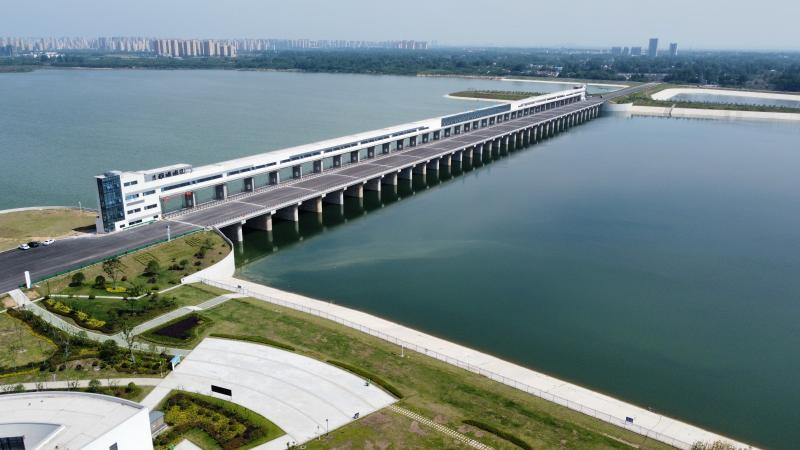 淠河六安市城南水利枢纽工程,位于淠河中游商景高速公路桥下游约1200米处,采用节制闸的布置形式拦蓄上游来水。该工程是六安市目前最大水利单体,具备拦水、造湿地、改善水生态等功能,可提水效益、保供水、通交通,蓄水成“赤壁湖”,呼应“赤壁渔歌”,彰显文化底蕴。
