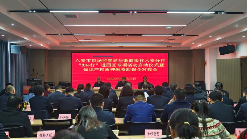 2025年10月28日,六安市知识产权质押融资银企对接会暨“知e行”进园区专项活动启动仪式在六安高新区成功举办。本次活动旨在深入贯彻落实知识产权金融服务工作部署,拓宽中小微企业融资渠道,助力区域经济高质量发展。