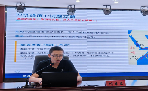 最后,付本立老师通过分享自身参加省作业设计大赛的实战经验,就《新教材背景下历史作业设计与评价》进行了精彩分享。他强调,作业设计需注重情怀、思维与价值,同时指出教学设计应由教材转向新课标,命好题是教学之“指挥棒”。
