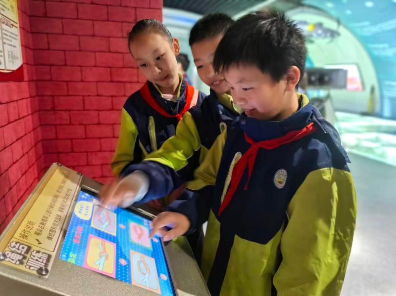活动首站走进六安市民防科普馆。在讲解员的引导下,队员们依次参观防灾减灾展区、防空知识展厅等区域,队员们通过震倾斜小屋、抗震建筑演示平台等实践项目学习防震减灾知识、人民防空知识与防护技能,深刻认识到“人民防空为人民”的重要意义。