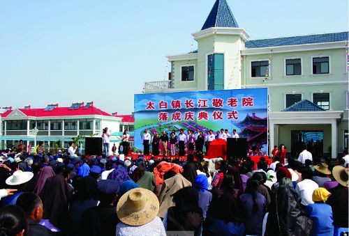 2014年以保障农村五保对象基本生活权益为目标,继续提高五保供养标准,确保农村五保对象生活保障达到当地村民平均生活水平,促进农村经济发展和社会稳定。建设敬老院床位,改善敬老院设施条件,进一步提升农村五保集中供养能力和水平。图为马鞍山当涂县太白镇敬老院落成庆典现场。