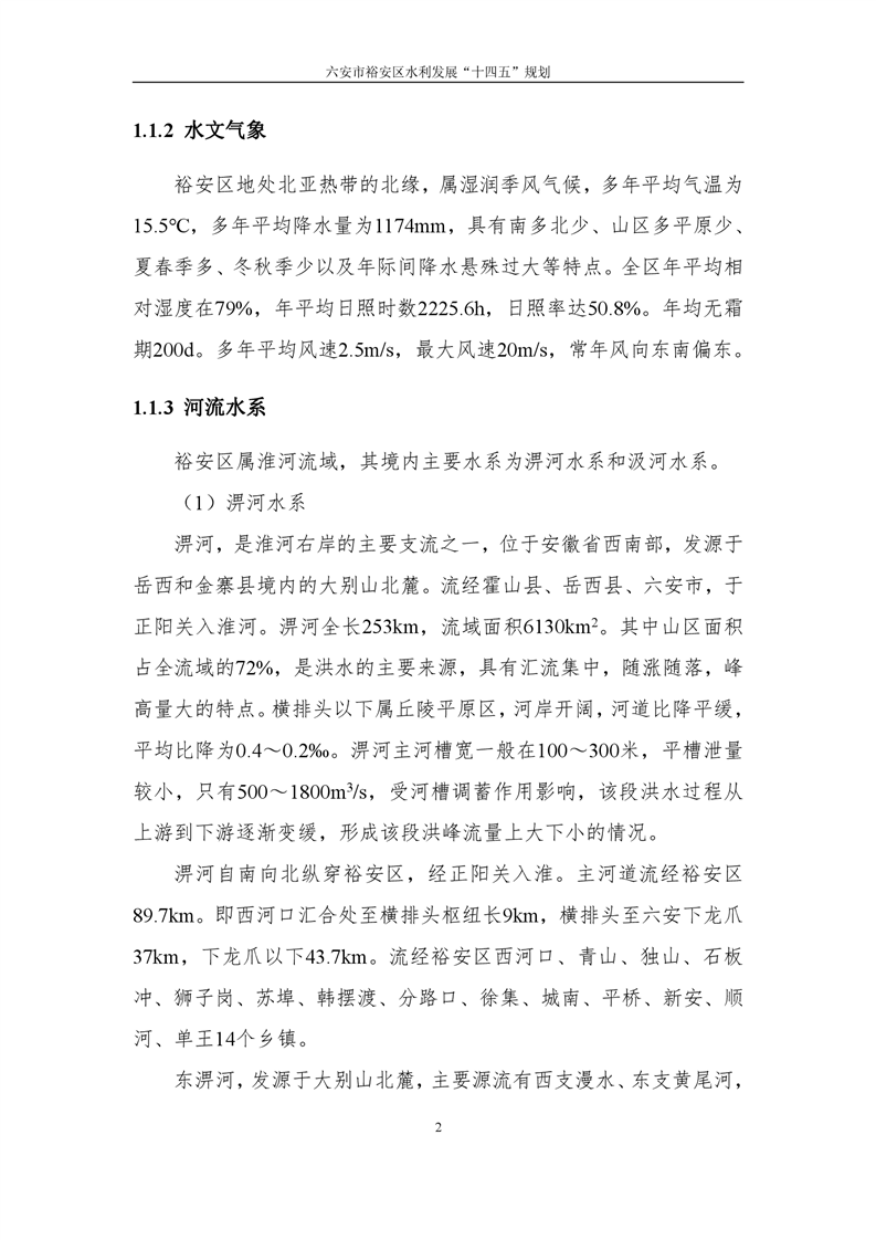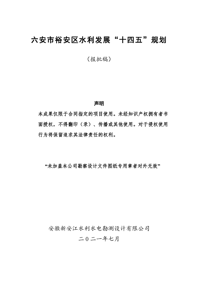 六安市裕安区水利发展“十四五”规划